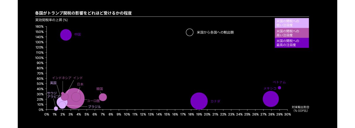 関税政策自体は重要ですが、その大きな変動が市場にさらなる不確実性をもたらすことに注目すべきです。確かなことは、企業経営者がこの類まれな不安定な状況に対処するために、よりレジリエント(耐久性のある強靭)な組織づくりに注力する必要があるということです。